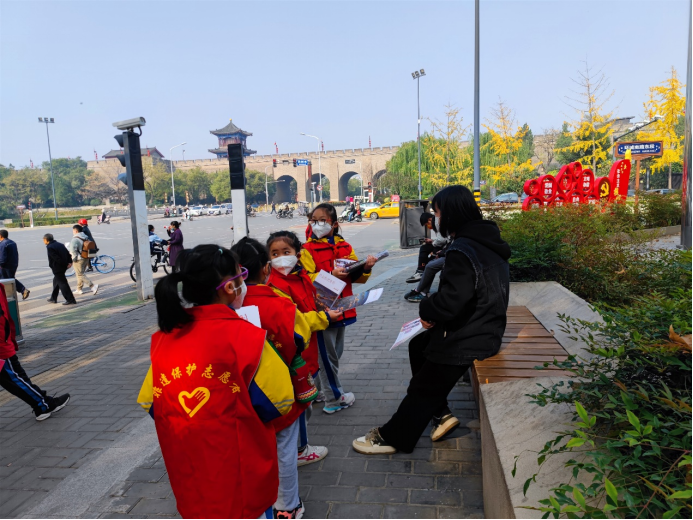 “我愿意成为一名非遗小小宣传员,不计得失、履行志愿精神,传播非遗文化……”近日,在西安市群众艺术馆门前,30名“红领巾”成为非遗志愿者,他们宣读誓言,要用自己的行动更好地传播非遗文化。这是由文化和旅游部公共服务司、中宣部志愿服务促进中心主办,西安市群艺馆承办的“强国复兴有我”——青少年文化志愿服务行动之“志愿零距离·传承有青春”非遗小小宣传员志愿服务活动中的一幕。此外,小小宣传员们还手持宣传资料走上街头,向过往的哥哥、姐姐、叔叔、阿姨们散发有关西安非遗的图册、彩页,介绍非遗项目。
