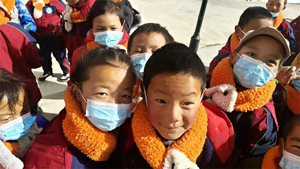 隶属青海省果洛藏族自治州的班玛县,入冬后收到了来自浙江杭州临安的一批爱心围巾。班玛县吉卡乡寄宿制小学的孩子们系上可爱的狐狸造型围巾,高兴地在镜头前展示。