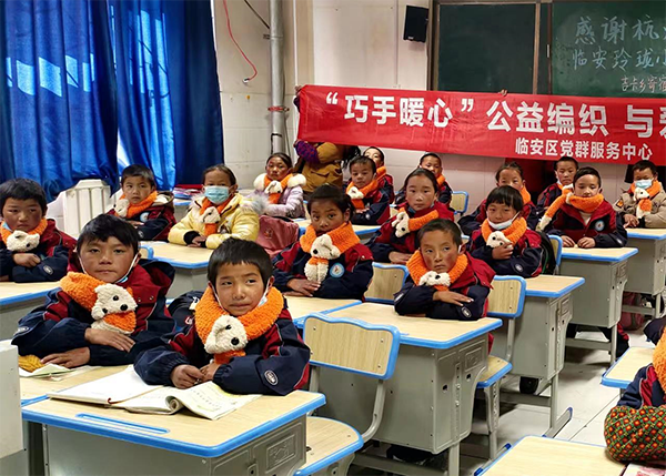 这批爱心围巾是地处临安区玲珑街道的玲珑小学近50名教职工相互协助、手工编织的。“我们学校的王秀琴老师常年热心公益,她了解到青海班玛需要冬衣和围巾后,就通过学校党支部、妇联发动大家一起打围巾。”校党支部书记林霞说,全校党员、女教师立即行动起来,利用课余和晚上时间,织出了60多条围巾。