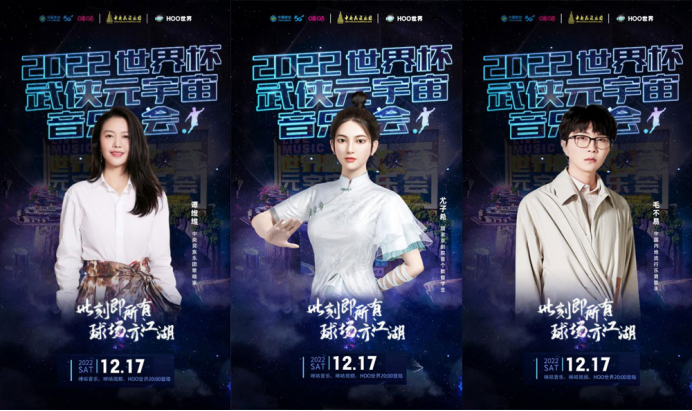 2022世界杯·武侠元宇宙音乐会将于12月17日20点在咪咕视频、咪咕音乐、HOO世界、中央民族乐团官方直播平台播出。