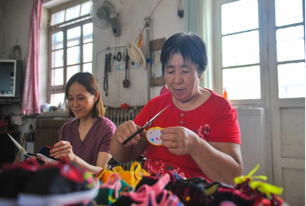 机织虎头鞋曾因其价格便宜、花样繁多一度占领市场,但人们渐渐发现,机织鞋在柔软度、保暖性方面远不如手工缝制的虎头鞋。“我们用的是纯棉布,粘鞋底的糨糊是用食用面粉做成的,鞋里加上一层绒布,孩子穿上后柔软舒适、走路平稳,并且鞋子吸汗,能保护孩子稚嫩的小脚丫。”张晓芸说。