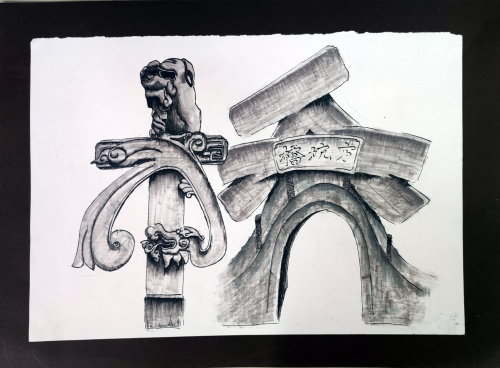 《方坑桥》则把目光放在了万市古桥的代表——方里村的方坑桥,将拱桥的造型和图案与“桥”字相结合,打造了一座专属于万市的古“桥”,行走于古桥之余,可以在画作之间品味古桥印记。