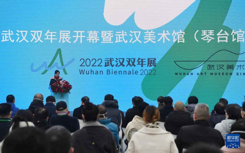 12月28日拍摄的“艺以通衢——2022武汉双年展”开幕仪式现场。