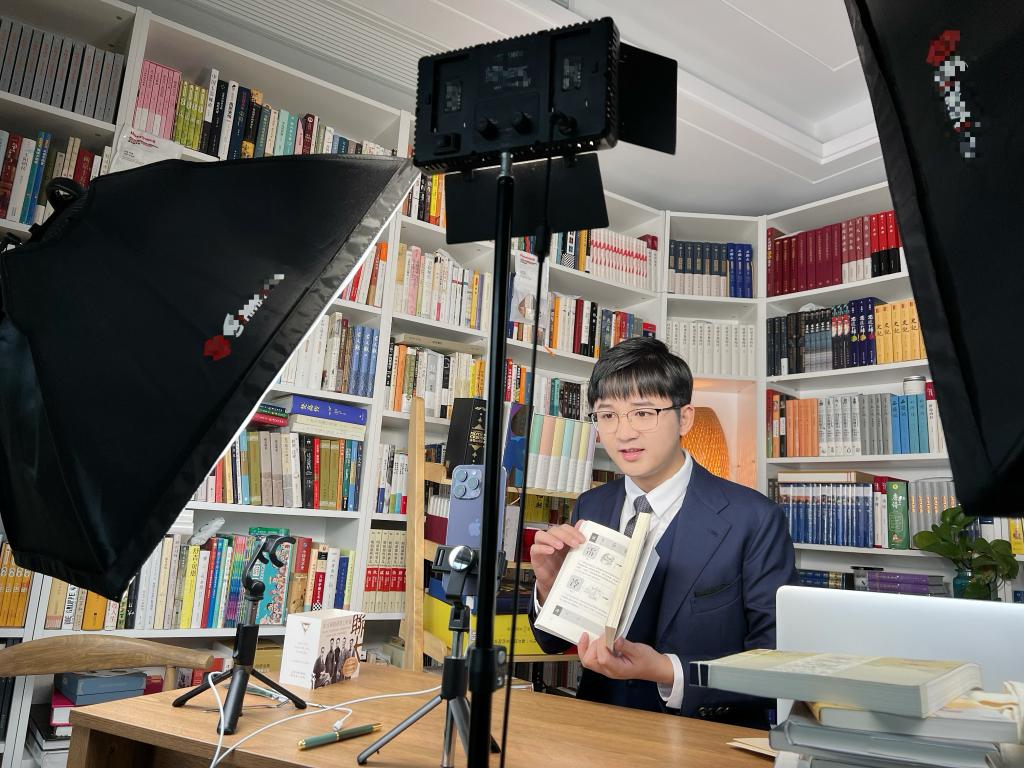 这是讲书人赵健网络直播的日常。来自江苏南京的赵健在抖音平台已拥有近90万粉丝,他的走红不是凭着展示特殊技能或搞笑的剪辑,而是每次都淡定从容地面对网友讲解书籍内容,情景简单,表达直接,一切都源于自己的初心:让更多人爱上阅读。