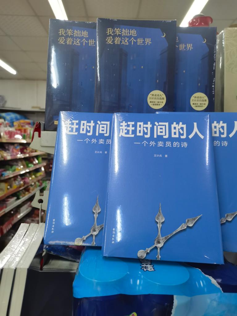王计兵的两本诗集摆在货架上。新华社记者 朱筱摄