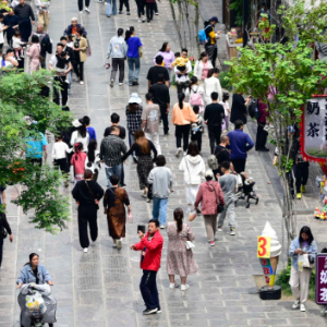 5月3日,游客在山东潍坊青州古城景区游玩。新华社发(王继林 摄)
