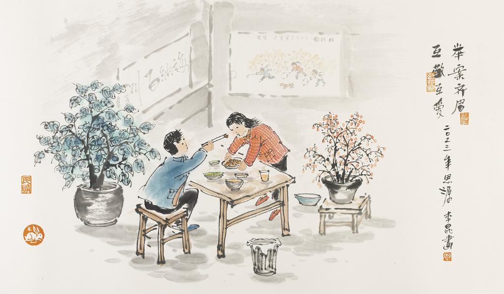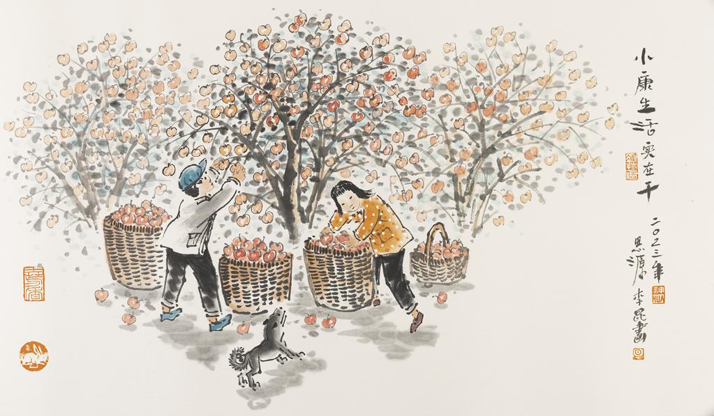 陕西画家李昆多年来深入乡村、深入农民群众中写生,用自己独特的艺术视角去感受和记录生活,创作了千余幅中国“百年乡情”画作。近期,他新创作了一组具有浓郁陕西风情的国画作品,倡导乡村文明、节俭、理性、高雅的现代婚俗新风,以及互敬互爱、尊老爱幼、勤劳自强、和谐美满的优良家风。
