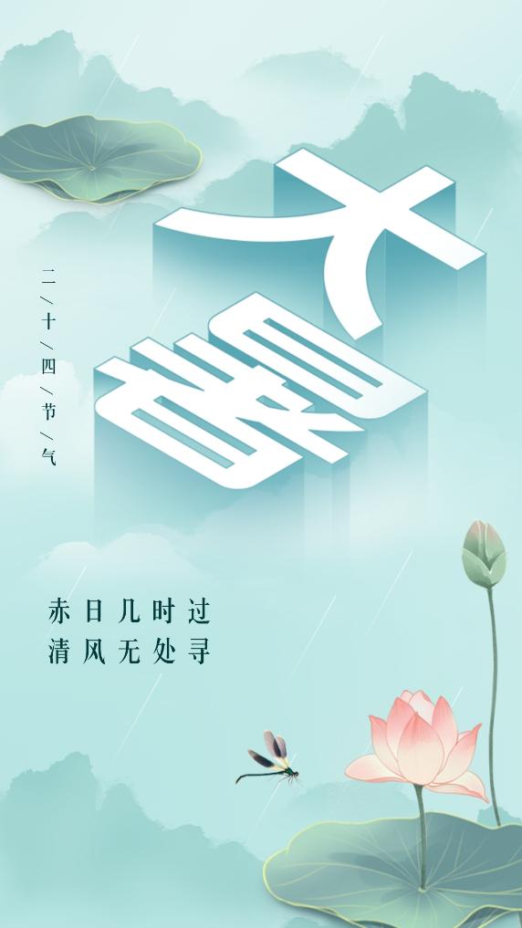 古人根据对大自然的观察,将大暑分为三候,其中的二候为“土润溽暑”,意思是说土壤浸润,天气闷热,湿气很重。“平分天四序,最苦是炎蒸。”民间有“小暑大暑,上蒸下煮”“小暑不算热,大暑正伏天”等谚语。宋代诗人郑刚中的《大暑竹下独酌》中写道“隆暑方盛气,势欲焚山樊。”山中的茂林几乎都要被暑热焚烧。诗人杜甫的《夏夜叹》前两句诗“永日不可暮,炎蒸毒我肠。”也是对酷暑的控诉。“南州大暑何可当,雪冰不解三伏凉。”元代诗人张昱在这首《热》中感叹,冬天的冰雪都难以化解三伏的热气。唐代的柳宗元、宋代的苏轼等文人墨客也曾用“蒸郁”一词来形容大暑前后的闷热潮湿之感。