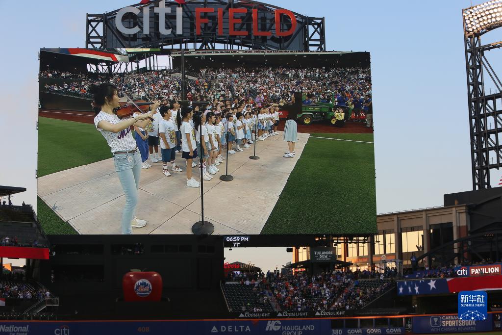 9月1日,在美国纽约大都会棒球队主场花旗球场,儿童合唱团在“中华之夜”暨“你好!中国”旅游推广品牌发布活动结束后表演。新华社记者 张凤国 摄