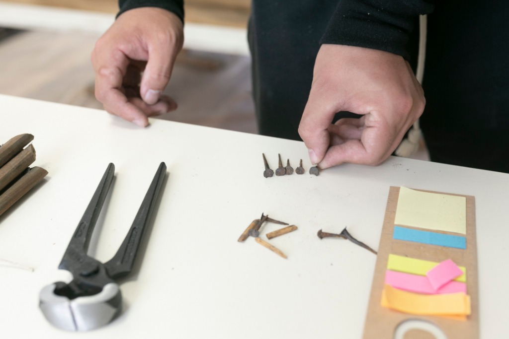 这是10月16日在斯洛文尼亚卢布尔雅那的民族志博物馆拍摄的中国古建筑木质大门模型上的钉子。新华社发(泽利科·斯特凡尼奇摄)
