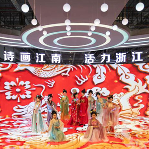 11月16日在浙江展位拍摄的古装表演。新华社记者王翔 摄