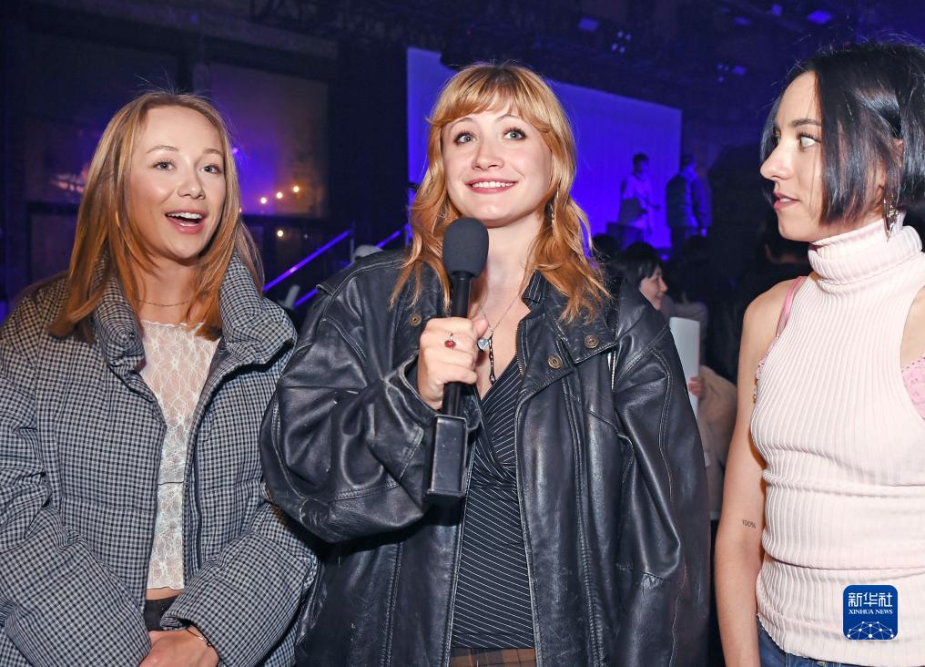 11月25日,在美国纽约,观众西尔薇·施泰格(中)接受采访。她告诉记者,五条人是她见过最好的乐队之一,她首次观看就非常喜欢他们的表演。新华社记者 李睿 摄