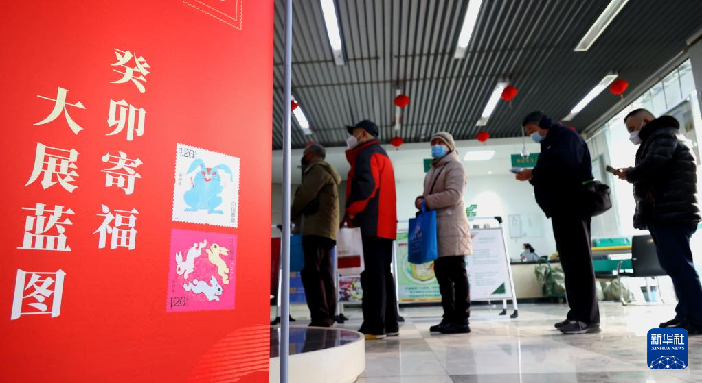 1月5日,在江苏省连云港市海州区一邮政网点,集邮爱好者排队购买《癸卯年》特种邮票。