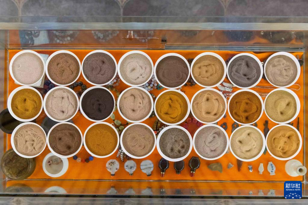 1月4日拍摄的阿拉腾毕力格挑选的不同颜色的沙子。