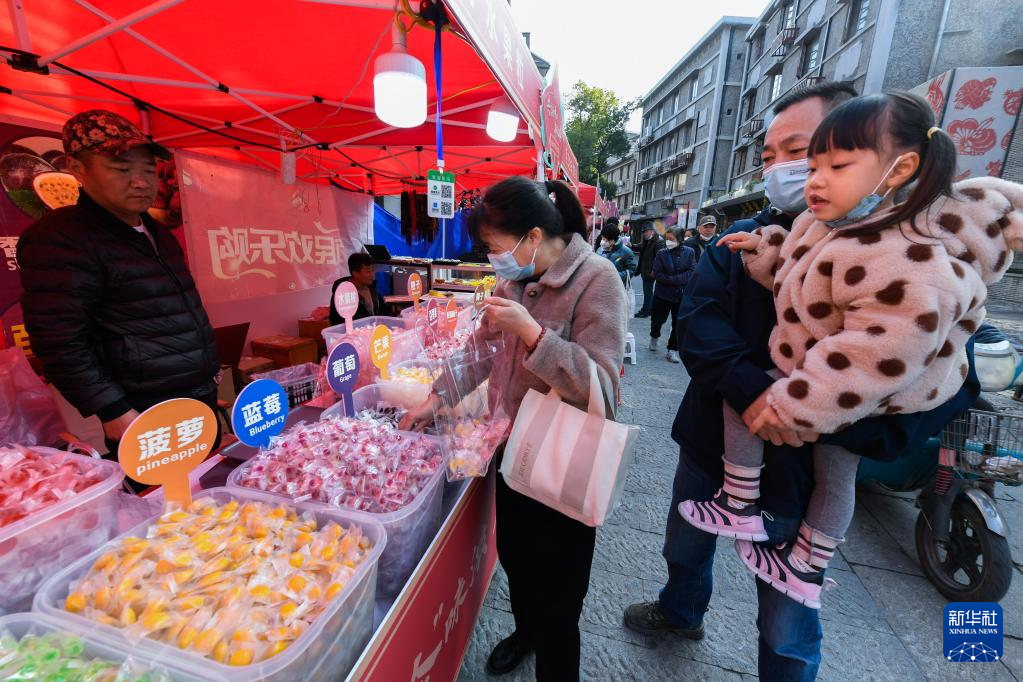 1月11日,人们在杭州市余杭区瓶窑镇瓶窑老街年货节上采购特色年货。新华社记者 徐昱 摄