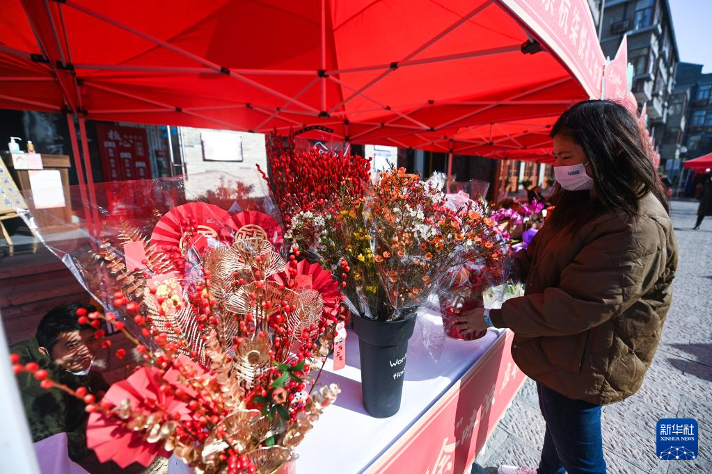 1月11日,人们在杭州市余杭区瓶窑镇瓶窑老街年货节上在采购年宵花。新华社记者 徐昱 摄