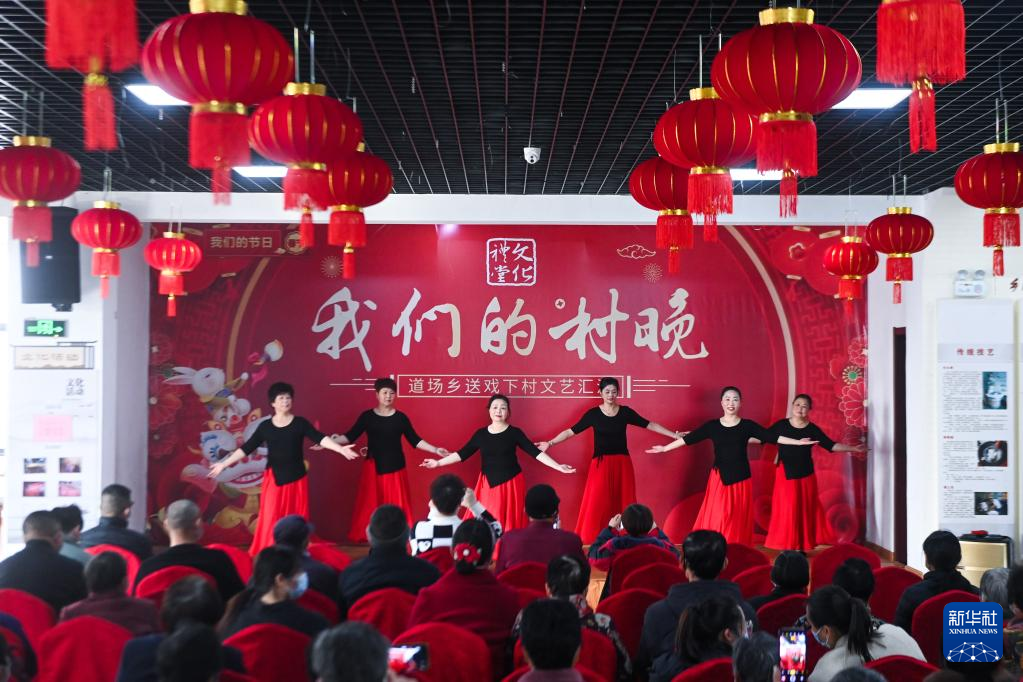 1月11日,在道场乡施家桥村文化礼堂,演员在“我们的村晚”上表演舞蹈。新华社记者 徐昱 摄