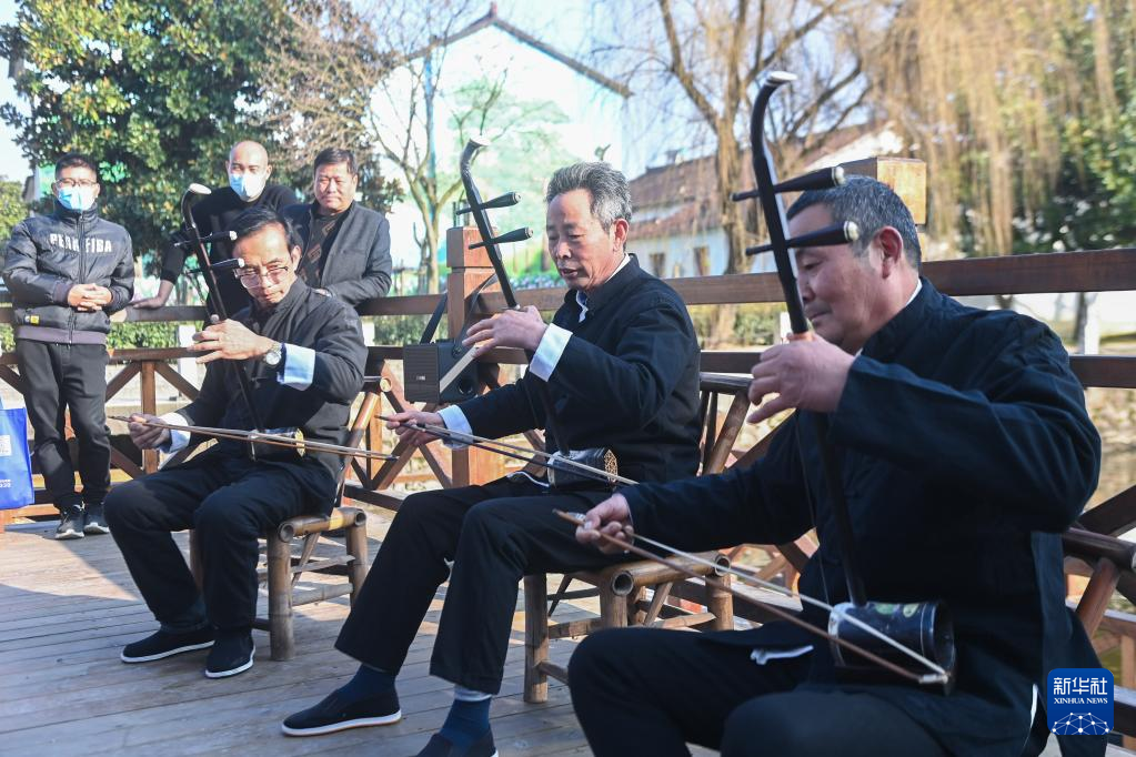 1月11日,“我们的村晚”送戏下乡文艺汇演在浙江湖州吴兴区道场乡施家桥村文化礼堂和村小广场热闹开演。由志愿者、文艺爱好者、村民自编自导自演的歌舞、戏曲、非遗等特色节目轮番登场,热热闹闹迎接新春佳节的到来。