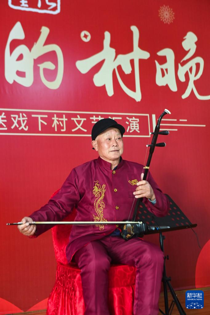 1月11日,在道场乡施家桥村文化礼堂,志愿者在“我们的村晚”上独奏二胡。新华社记者 徐昱 摄