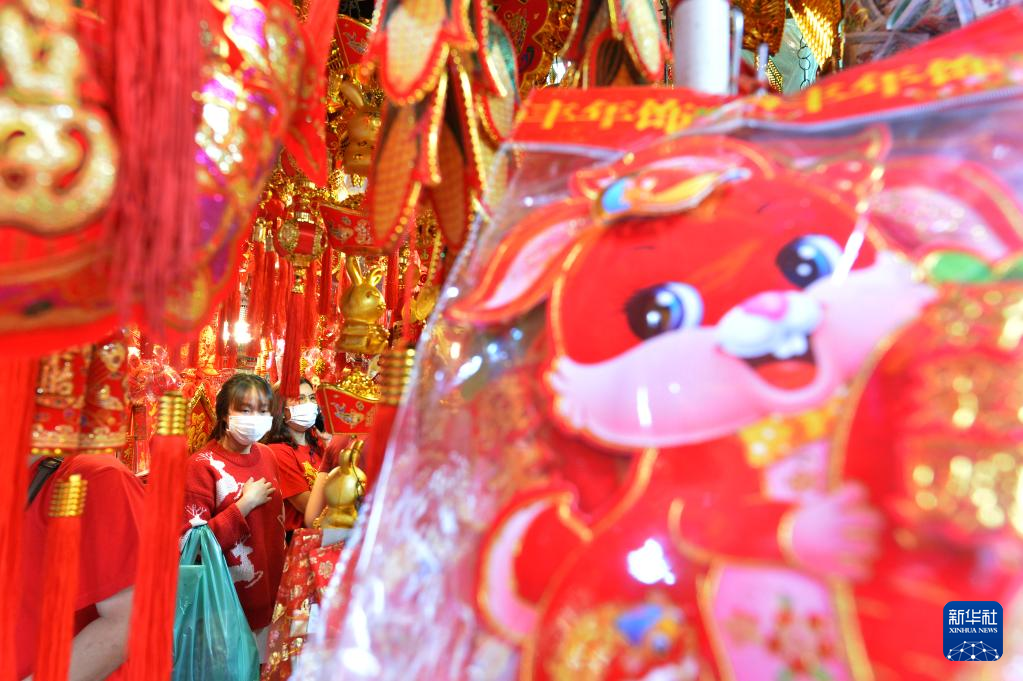 1月16日,顾客在泰国曼谷唐人街选购春节饰品。