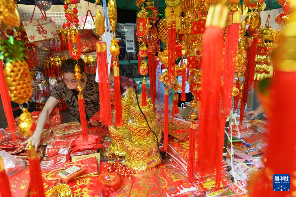 农历春节临近,泰国曼谷唐人街张灯结彩,吸引许多市民前往购置年货,迎接新春。