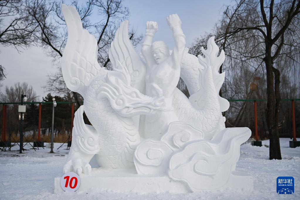 1月18日拍摄的第二十九届全国雪雕比赛二等奖作品《黑龙传说》。