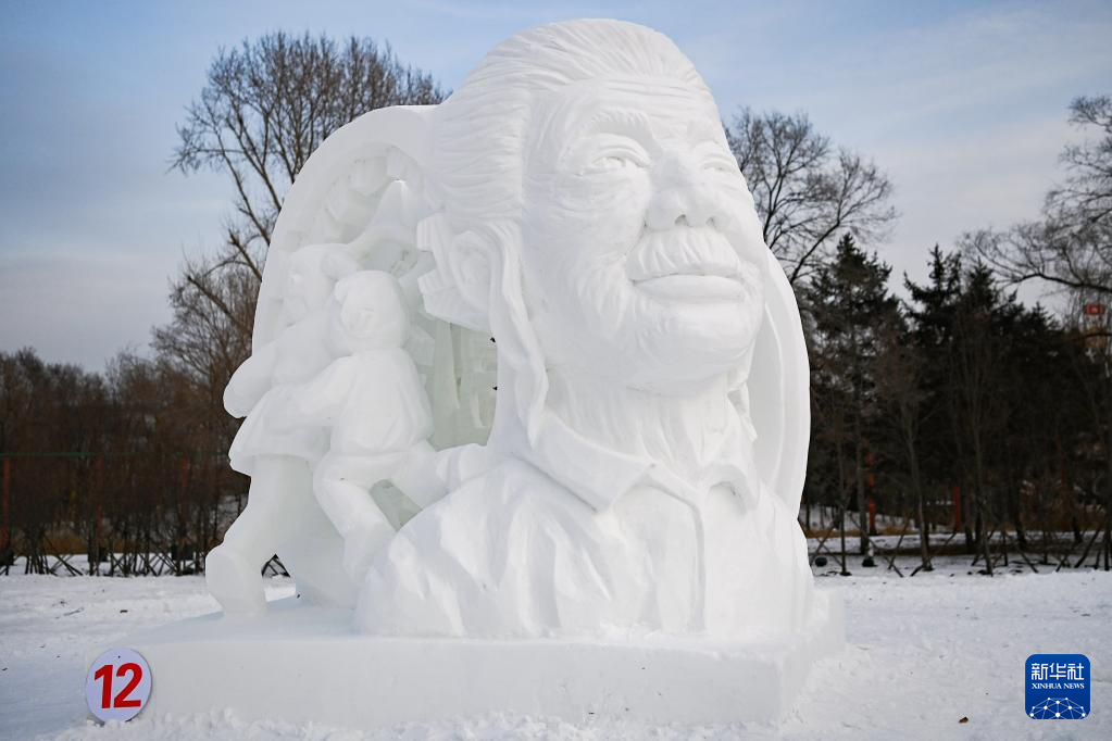 1月18日拍摄的第二十九届全国雪雕比赛一等奖作品《期盼》。