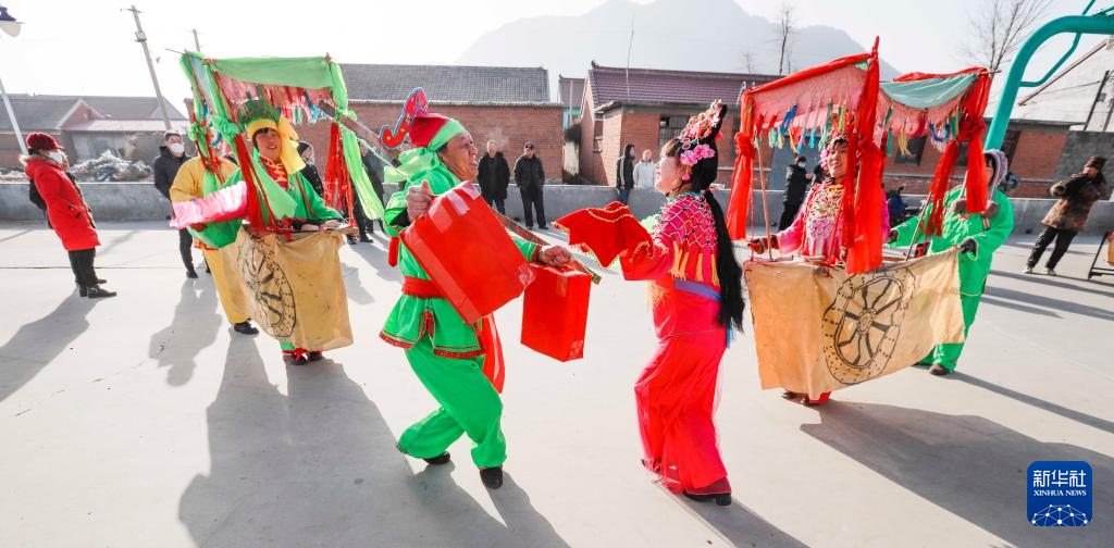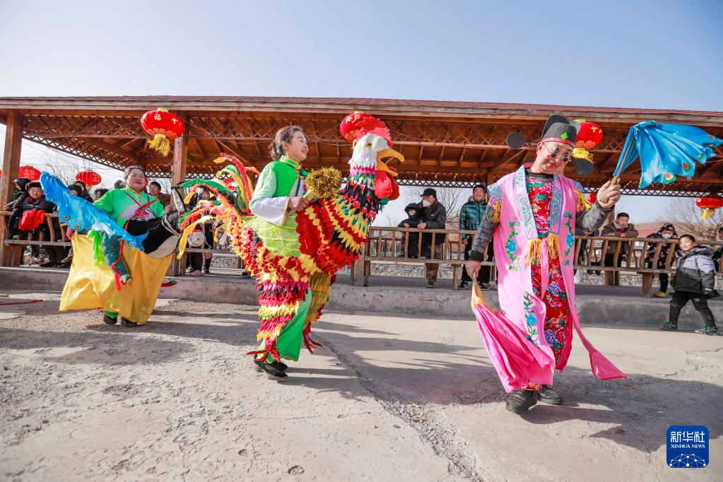 春节临近,河北省遵化市乡村民俗演出活动陆续展开,民间艺人们表演舞龙舞狮、划旱船、赶驴等传统民俗节目,迎接新春佳节。