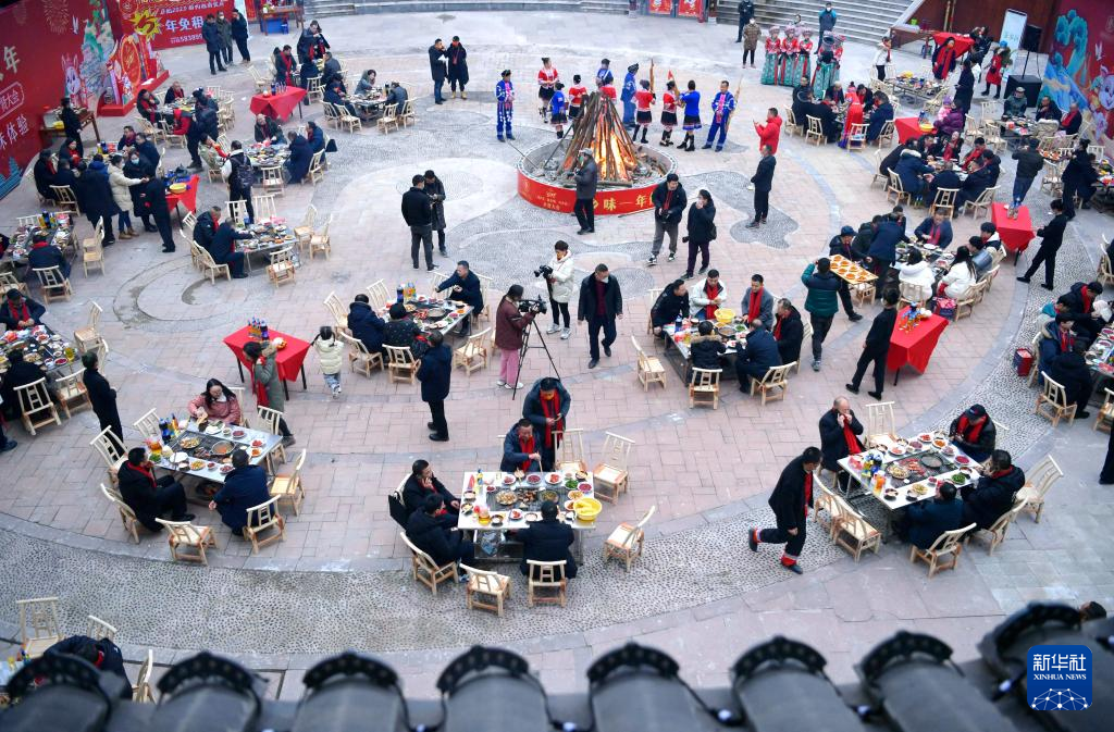 1月18日,在湖北省宣恩县举行的乡贤大会上,人们在参加“刨汤”宴。