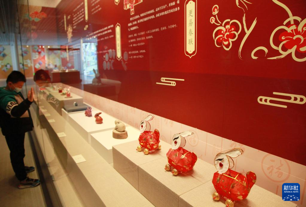 1月19日,观众在江苏省南京市六朝博物馆参观“我们的节日·福兔迎春——癸卯年贺岁展”。