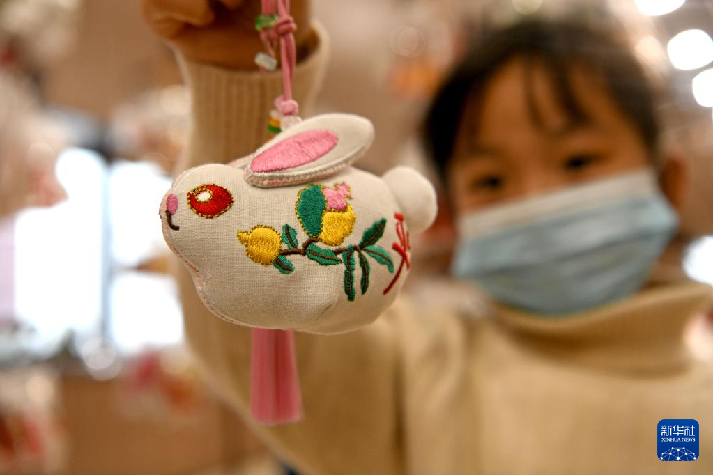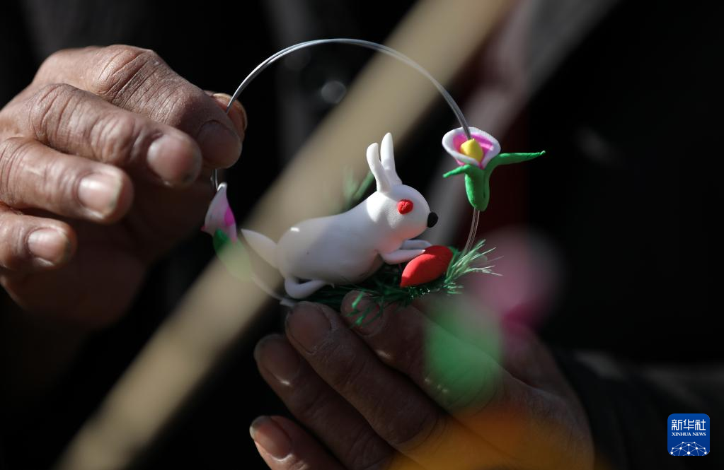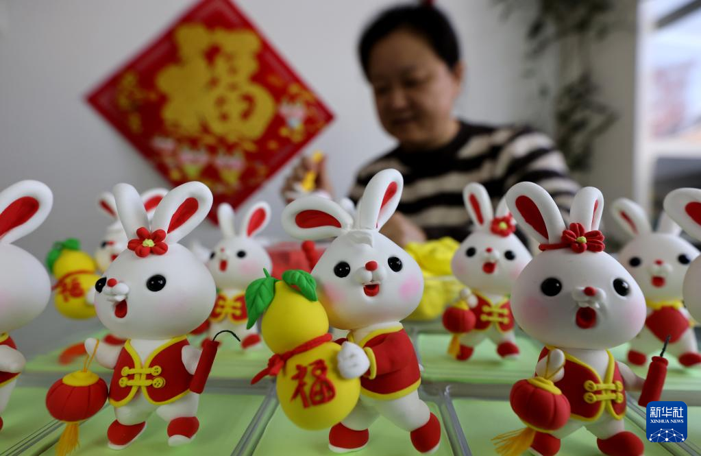 农历兔年春节临近,人们制作、购买各种兔元素的饰品和工艺品等,喜气洋洋迎新春。