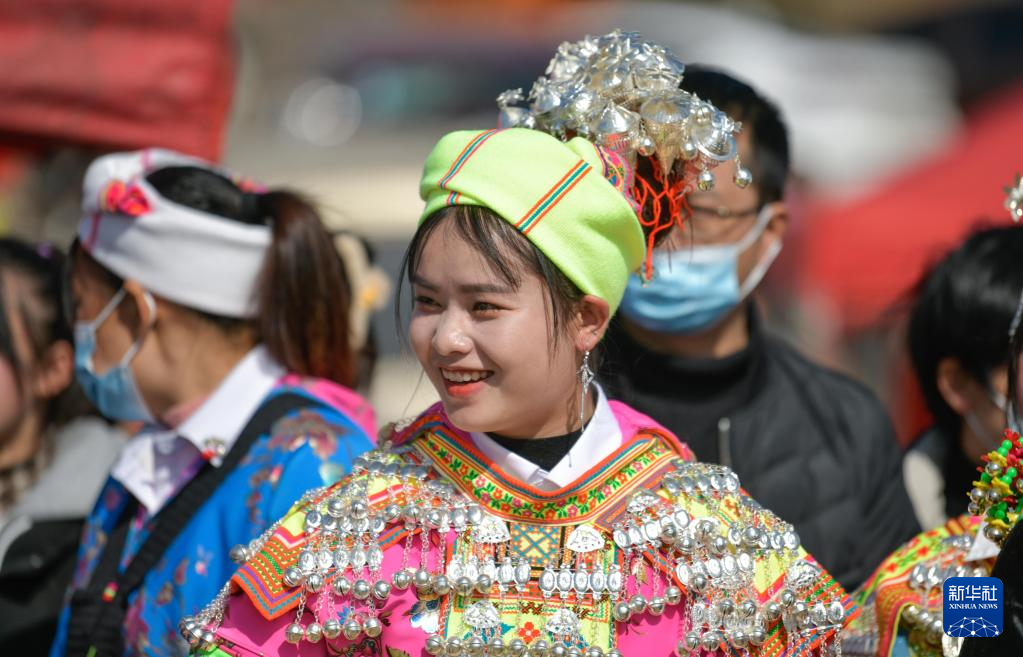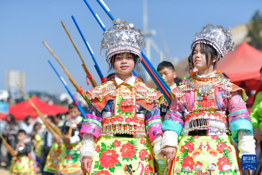 当日是大年初八,在贵州省黔南布依族苗族自治州龙里县龙山镇中排村,各村寨的苗族群众欢聚一堂,举行一年一度的“跳月”活动,欢庆新春。“跳月”是当地苗族群众祈福风调雨顺、欢庆新春的传统民俗活动,也是苗族青年男女寻找意中人的大型社交活动。
