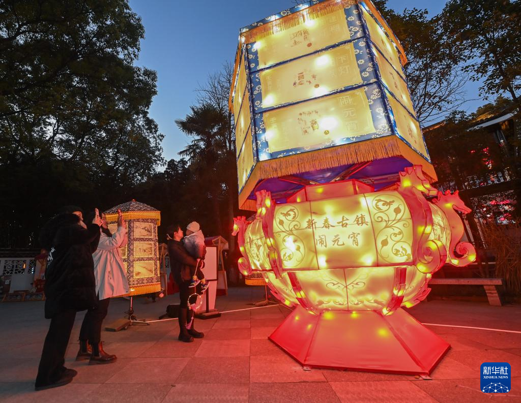 当日,有数百年历史的浙江省嘉兴市秀洲区新塍古镇元宵民俗“鳌山灯会”正式亮灯,现场彩灯交相辉映,五彩斑斓。除了民俗灯展外,“鳌山灯会”现场还有蛋画、银杏画、纸扎灯等非遗文化民俗展示。