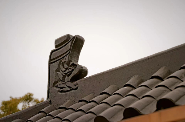 照壁屋檐两端有凸起的鸱吻,又名螭吻、鸱尾。据传鸱吻是龙所生九子之一,喜欢在险要处四处远眺,也喜欢吞火。北宋吴楚原《青箱杂记》也有关于鸱吻的记载:“海为鱼,虬尾似鸱,用以喷浪则降雨”。在中国传统文化中,人们相信在房脊上安两个相对的鸱吻,具有镇邪、避火的功能。