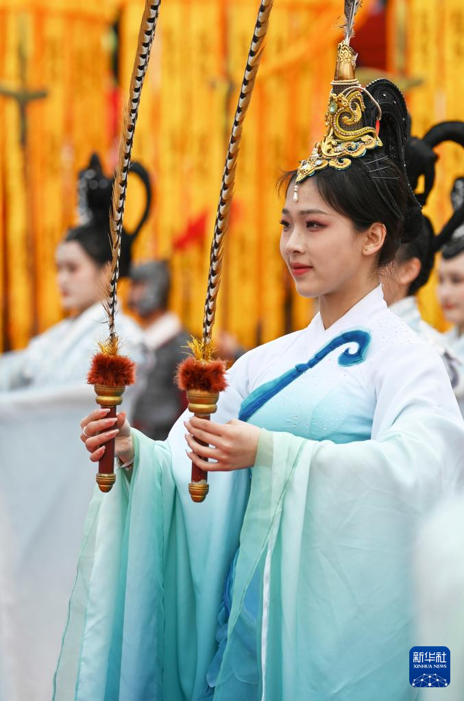 4月5日,演员在公祭轩辕黄帝典礼上表演黄帝祭典乐舞告祭。