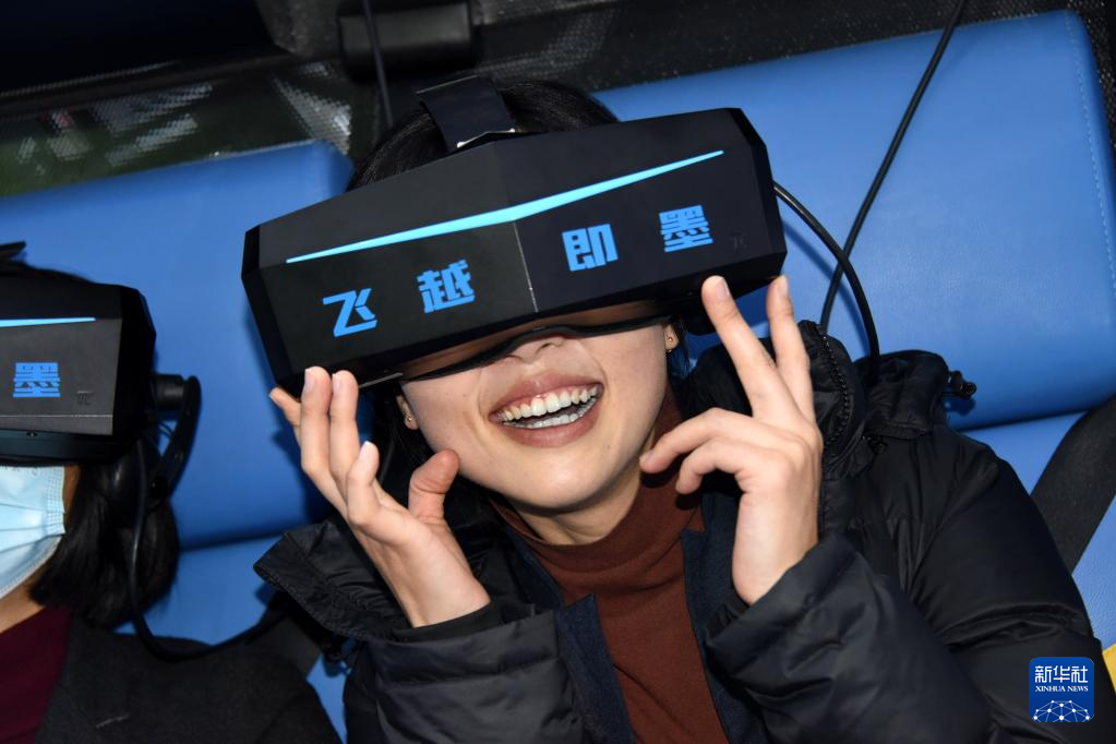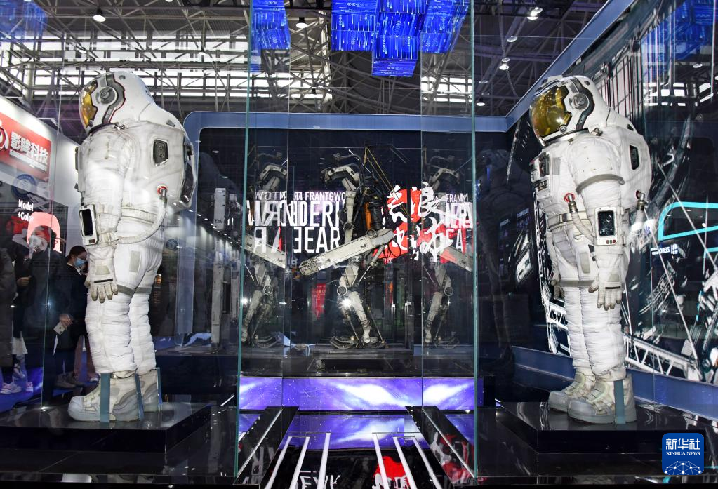 4月6日,工作人员在展示虚拟汉服穿戴。
