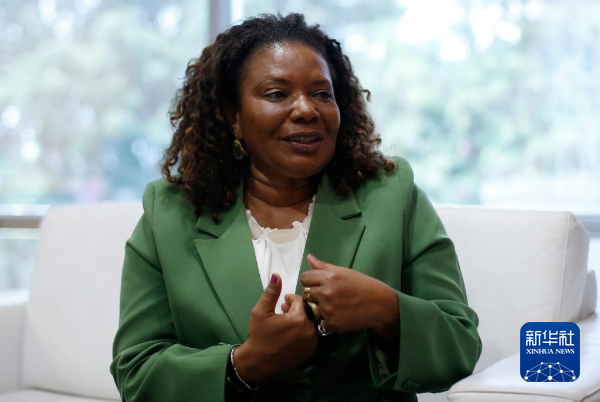4月10日,巴西文化部长梅内塞斯在巴西利亚接受记者专访。新华社发(卢西奥·塔沃拉 摄)