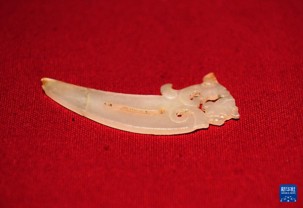 这是曹操高陵遗址博物馆内展出的玉觿(4月22日摄)。