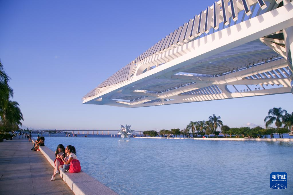 5月16日,人们坐在巴西里约热内卢的明日博物馆外。