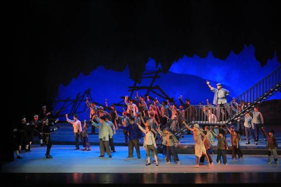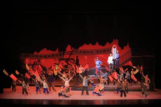 如果说歌剧是通过音乐来讲述故事、表达情感,那么主题曲则是歌剧中不可忽视的“调色剂”和“调味剂”。随着原创主题曲《一条大路长又长》响起,整个节目推向高潮。二重、三重和四重唱,包括与合唱形成边缘化的多重声部的“混合唱”,形成了立体化多层次的表达人物与戏剧情节发展的歌剧化场面。当声乐艺术与戏剧艺术的完美相结合,台上台下产生情感共鸣,观众沉醉其中,歌声、乐声、掌声此起彼伏。