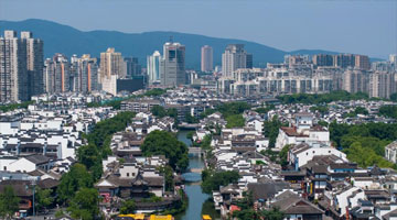 船只行驶在南京赏心亭旁的秦淮河上(6月10日摄,无人机照片)。