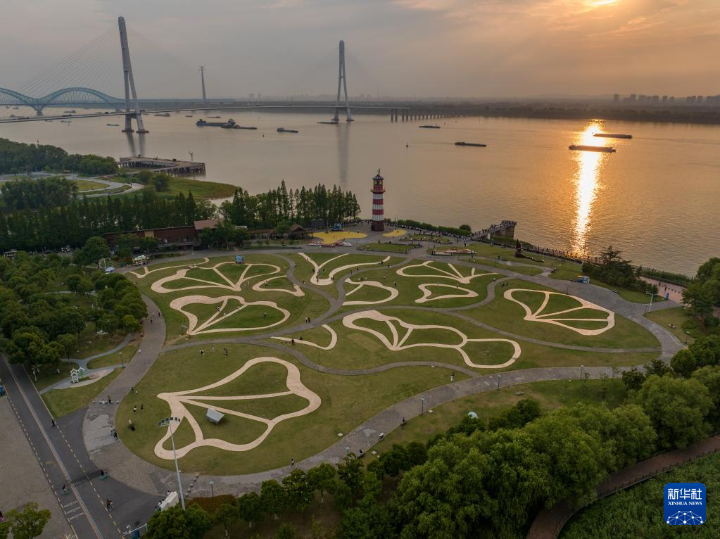 南京鱼嘴湿地公园(6月13日摄,无人机照片)。