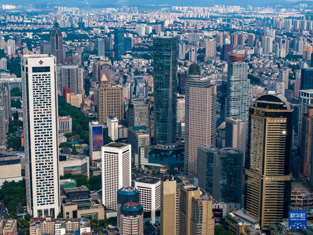 南京新街口商圈(6月12日摄,无人机照片)。