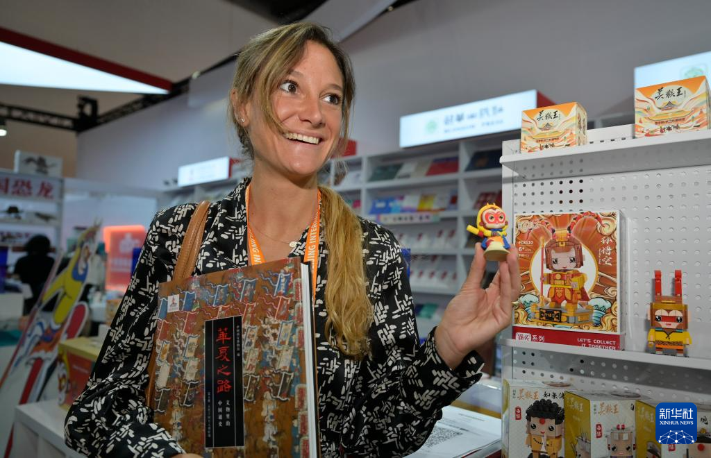 6月16日,观众在北京举行的第29届北京国际图书博览会上观看展示的“美猴王系列”文创产品。