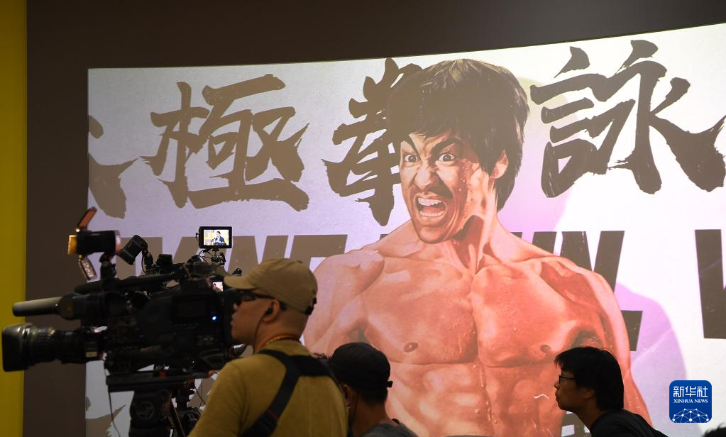 7月11日,媒体记者在香港文化博物馆“李小龙——经典永续”展览上拍摄。
