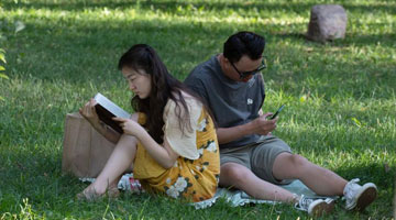 7月12日,作家何建明(左一)在北大红楼为观众讲解从北京大学走出的雨花英烈的事迹。