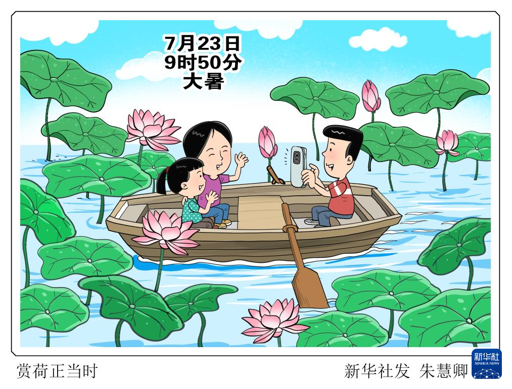 新华社天津7月22日电(记者周润健)“小暑不算热,大暑三伏天。”北京时间7月23日9时50分将迎来二十四节气中夏季的最后一个节气——大暑。此时节,虽然温高而气湿,但也是荷花开得最盛的时候,青翠欲滴的荷叶、亭亭玉立的莲蓬、红白辉映的荷花,令人赏心悦目。