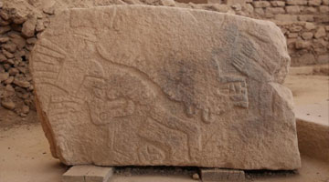 这是10月9日拍摄的位于土耳其尚勒乌尔法省的哥贝克力石阵中的石碑浮雕。