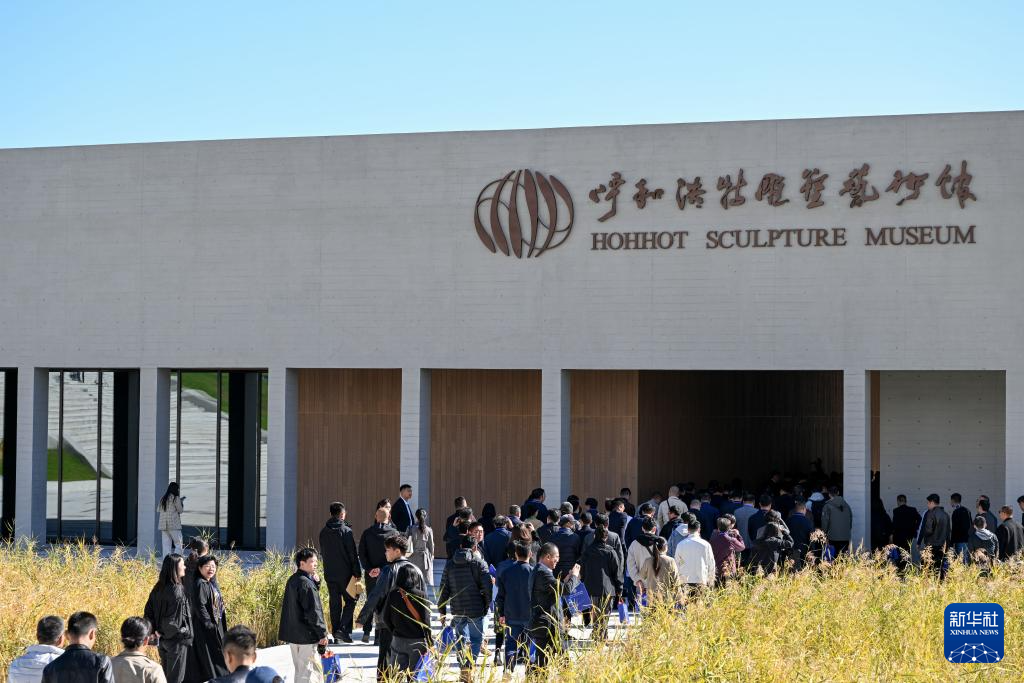 10月14日,观众走进呼和浩特雕塑艺术馆。
