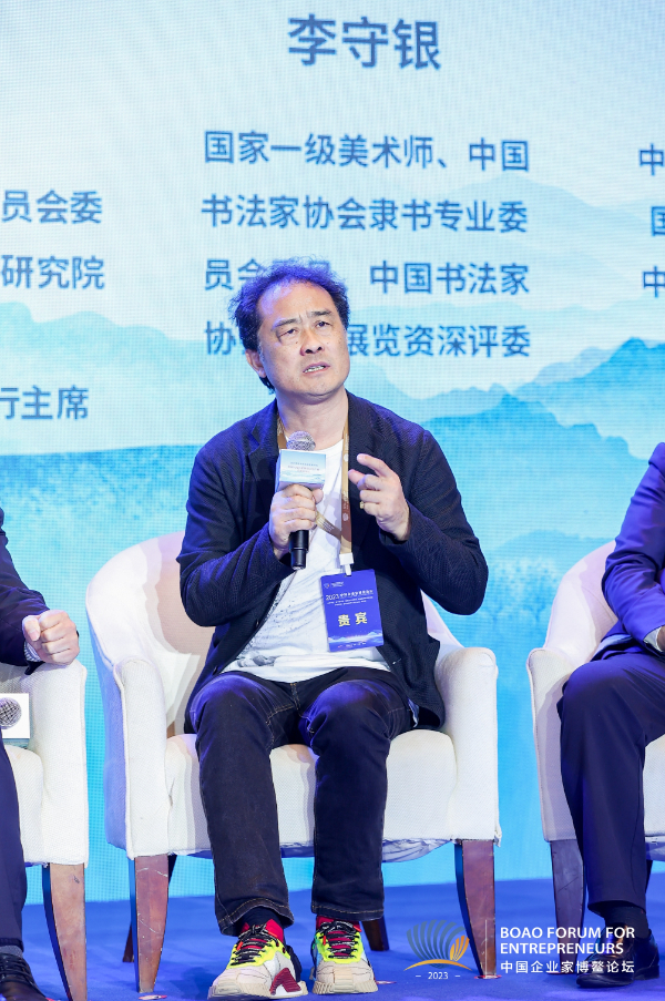 12月2日-5日,2023中国企业家博鳌论坛在海南博鳌举办。在3日举行的平行分论坛——2023中国文化经济发展论坛上,国家一级美术师、中国书法家协会隶书专业委会委员李守银作为圆桌对话环节的嘉宾,畅谈观点。